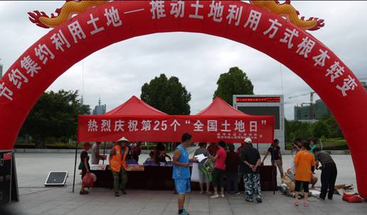 6月25日,为热烈庆祝第25个全国“土地日”,临沧市国土资源局和临翔分局以“节约集约利用土地,推动土地利用方式根本转变” 为宣传主题,在沧江园广场开展宣传活动。