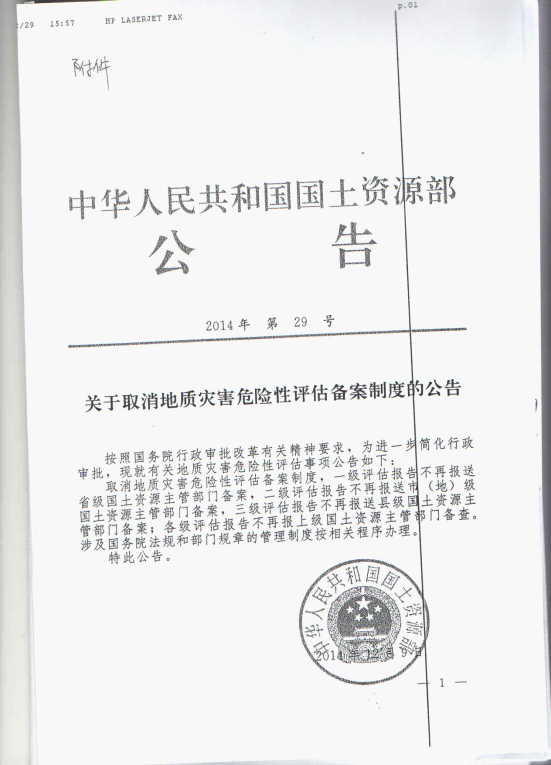 2.国土资源部关于取消地质灾害危险性评估备案制度的公告