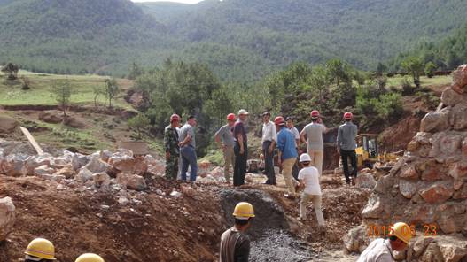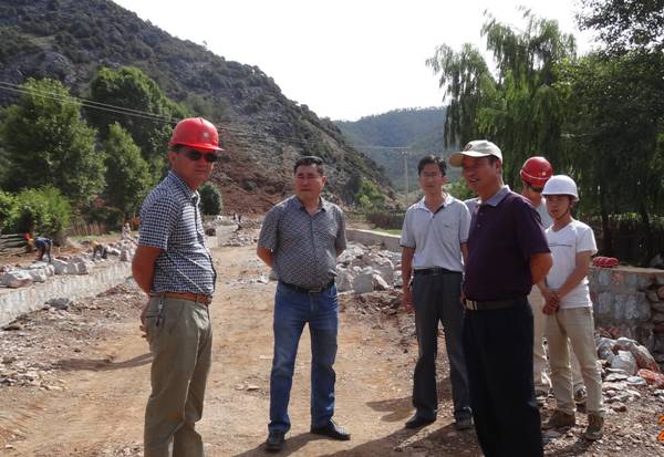 图为在宁蒗县红桥乡大水沟泥石流治理工程施工现场检查指导