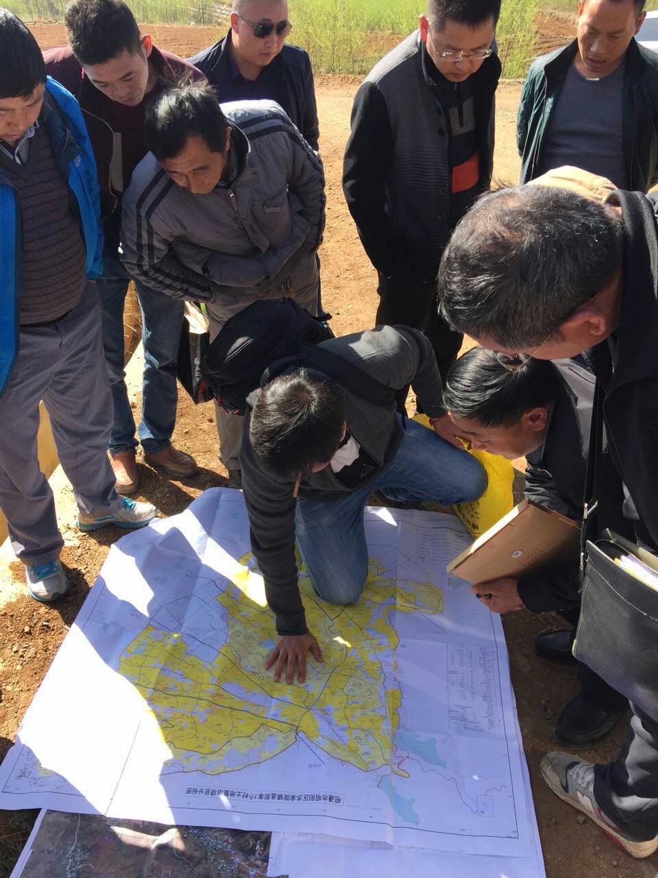3月22日早上,土地整理中心工作人员、苏家院、乐居2个镇的镇长、村知书、村民小组长、设计单位、监理单位和中标的各标段负责人、施工员一起到实地进行各标段的范围划定工作,划定之后各标段就可以进场施工。