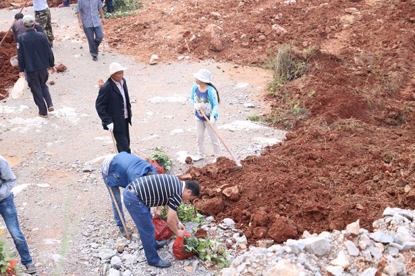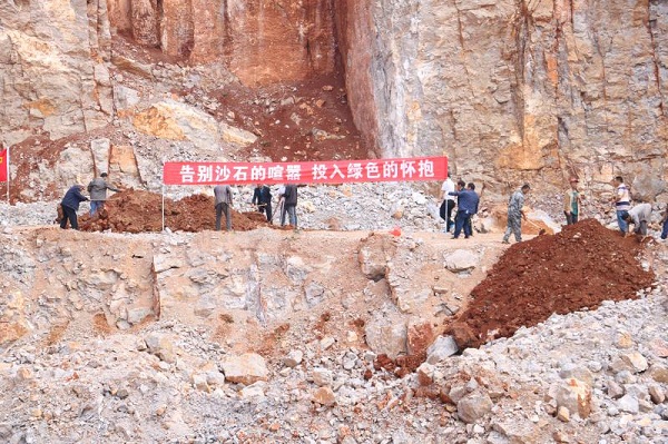 宣威市落水国土所配合相关部门对珠江源保护区内取缔关闭的采石采砂厂进行绿化