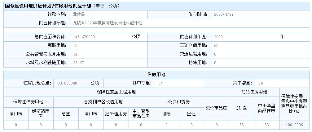 龙陵县2020年度国有建设用地供应计划