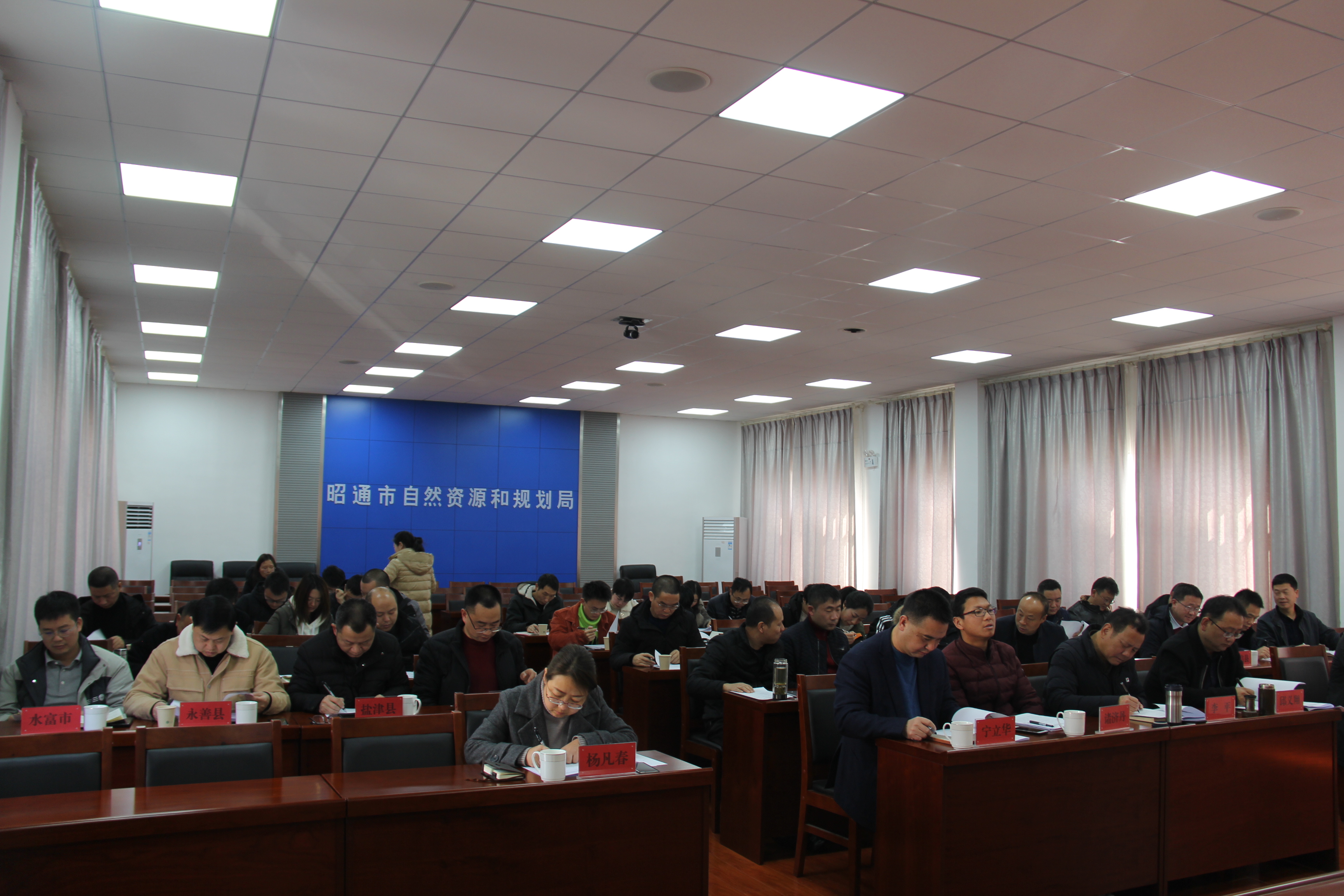 考核组成员,党组班子成员,各县(市、区)自然资源局主要负责人,各科室、下属事业单位负责人、部分职工代表共40余人参加会议。