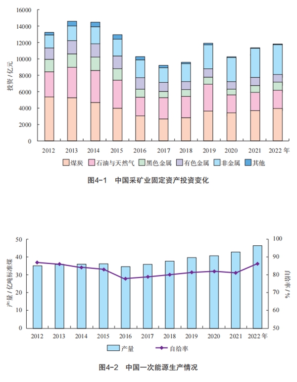 采矿业固定资产投资持续增长,主要矿产品产量继续保持增长。我国煤、石油、天然气等能源矿产保供成效明显,自给率上升,能源消费结构持续优化。