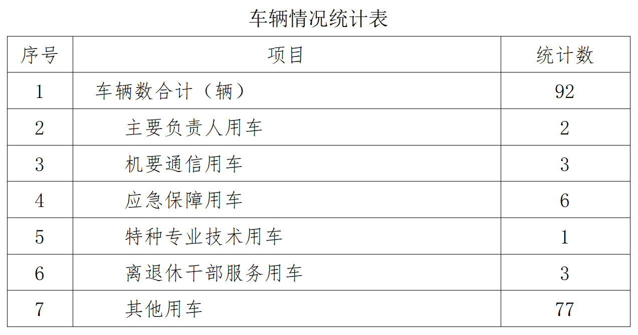 (三)按照党中央、国务院有关文件及部门预算管理有关规定,“三公”经费包括因公出国(境)费、公务用车购置及运行维护费、公务接待费。其中:因公出国(境)费,指单位公务出国(境)的国际旅费、国外城市间交通费、住宿费、伙食费、培训费、公杂费等支出;公务用车购置费,指公务用车购置支出(含车辆购置税、牌照费);公务用车运行维护费,指单位按规定保留的公务用车燃料费、维修费、过桥过路费、保险费、安全奖励费用等支出;公务用车指用于履行公务的机动车辆,包括省部级干部专车、一般公务用车和执法执勤用车;公务接待费,指单位按规定开支的各类公务接待(含外宾接待)费用。本文中公开的财政拨款“三公”经费相关数据是一般公共预算、政府性基金及国有资本经营预算财政拨款支出的相关经费,不含非财政拨款部分。