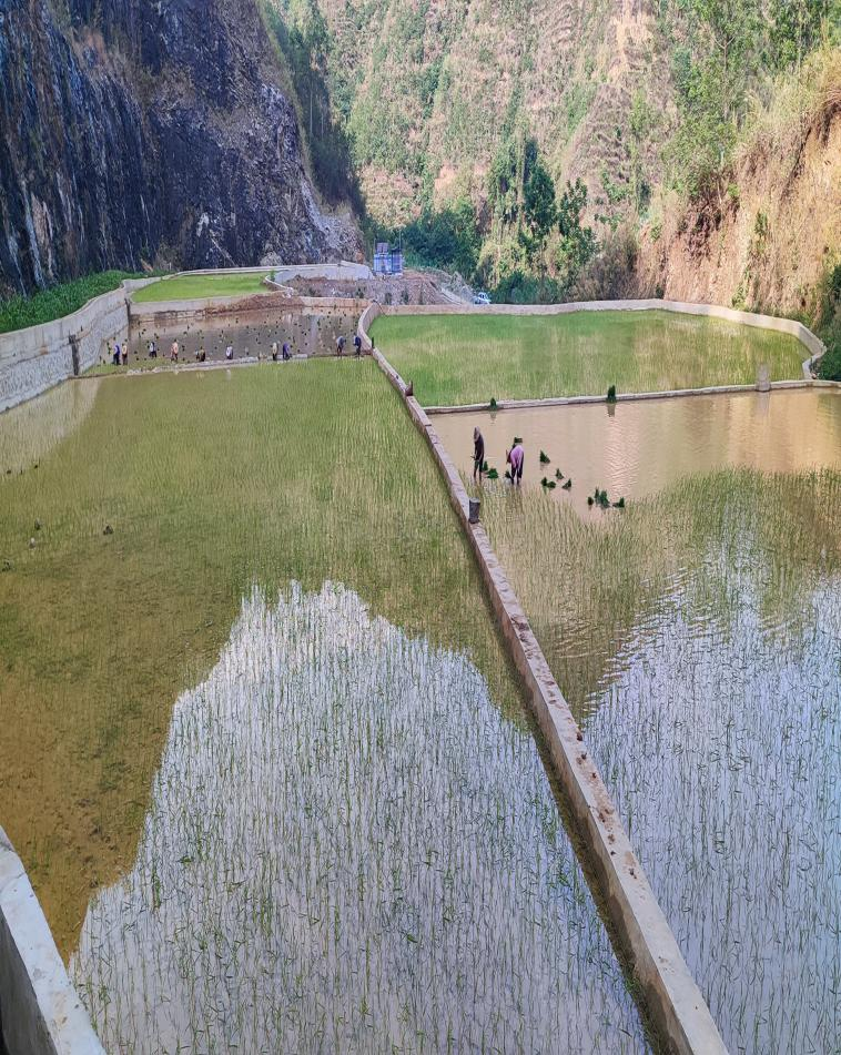 红河哀牢山与岩溶断陷盆地区历史遗留废弃矿山生态修复示范工程项目将采石场损毁土地因地制宜修复为水田。