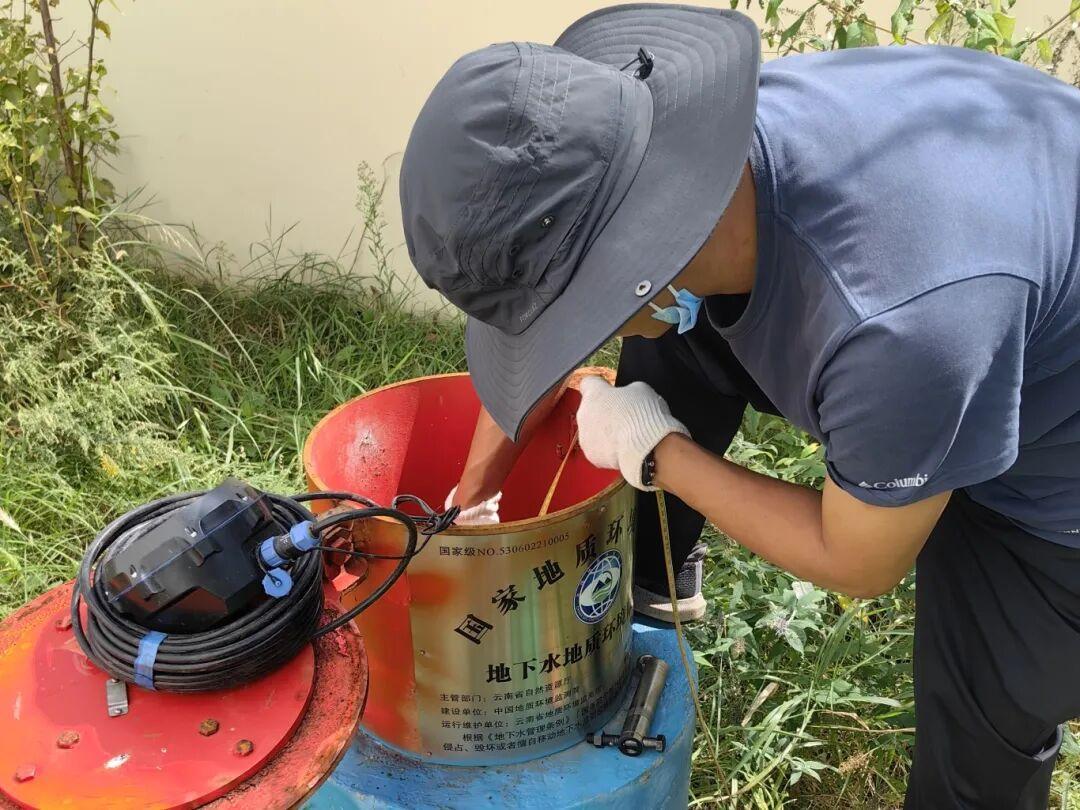 技术人员在昭通市昭阳区守望乡刘家海子村地下水地质环境监测站取样