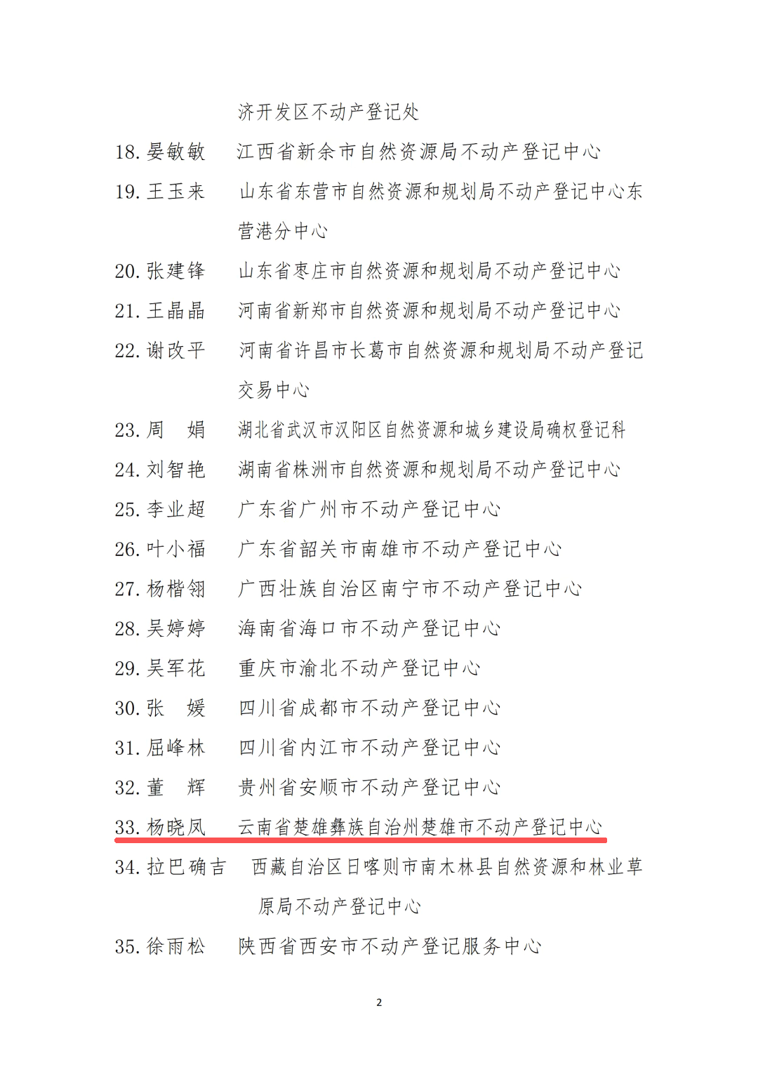 近日,自然资源部办公厅通报表扬2025年度不动产登记工作业绩突出个人,其中,楚雄彝族自治州楚雄市不动产登记中心杨晓凤入选,详情如下。