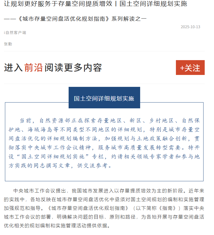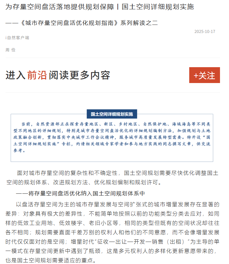 原文链接:让规划更好服务于存量空间提质增效丨国土空间详细规划实施