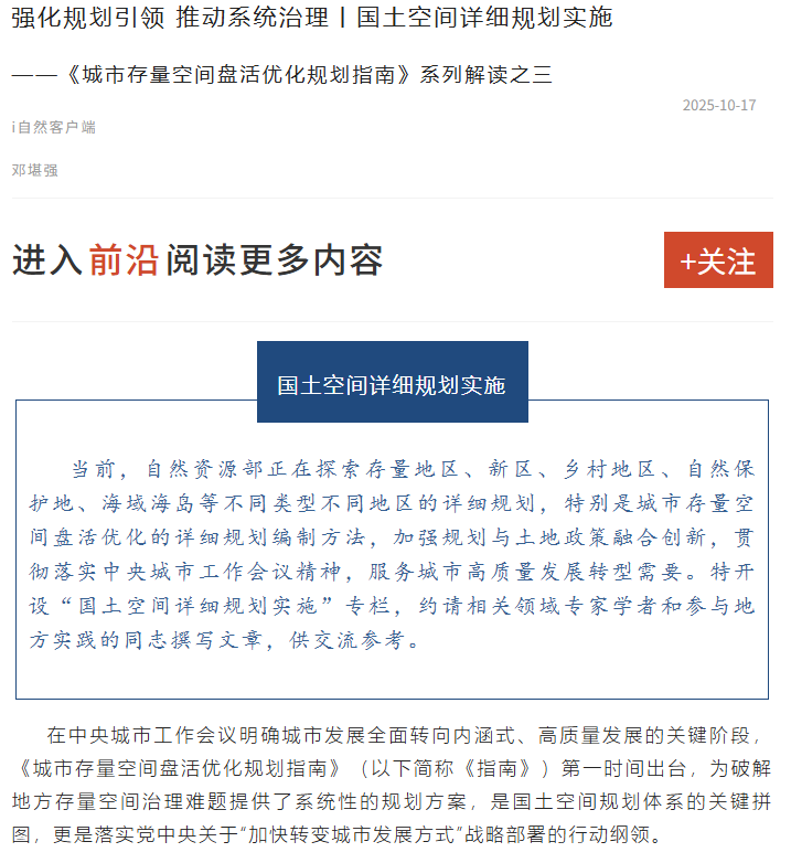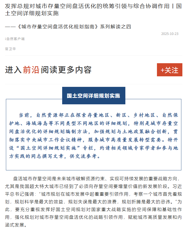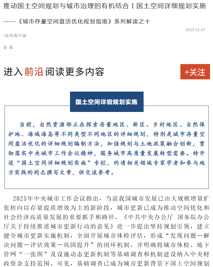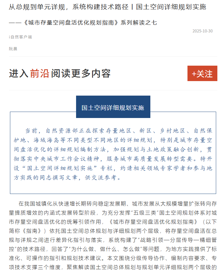 原文链接:推动国土空间规划与城市治理的有机结合丨国土空间详细规划实施