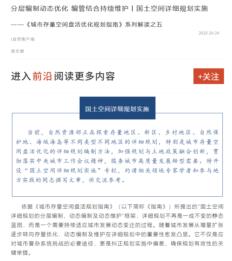 原文链接:分层编制动态优化 编管结合持续维护丨国土空间详细规划实施