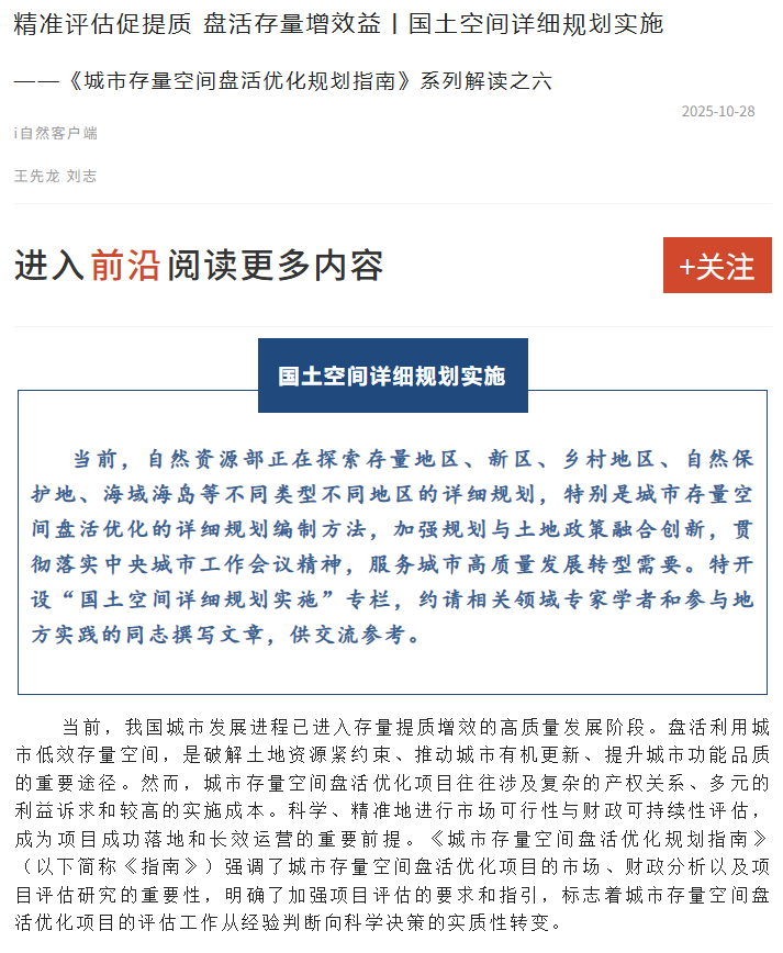 原文链接:精准评估促提质 盘活存量增效益丨国土空间详细规划实施