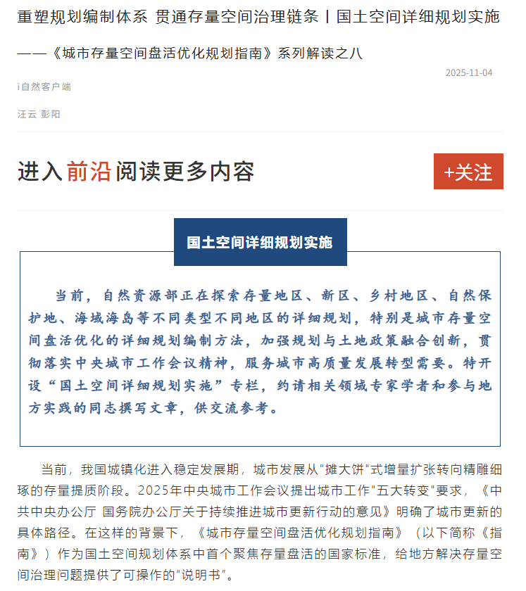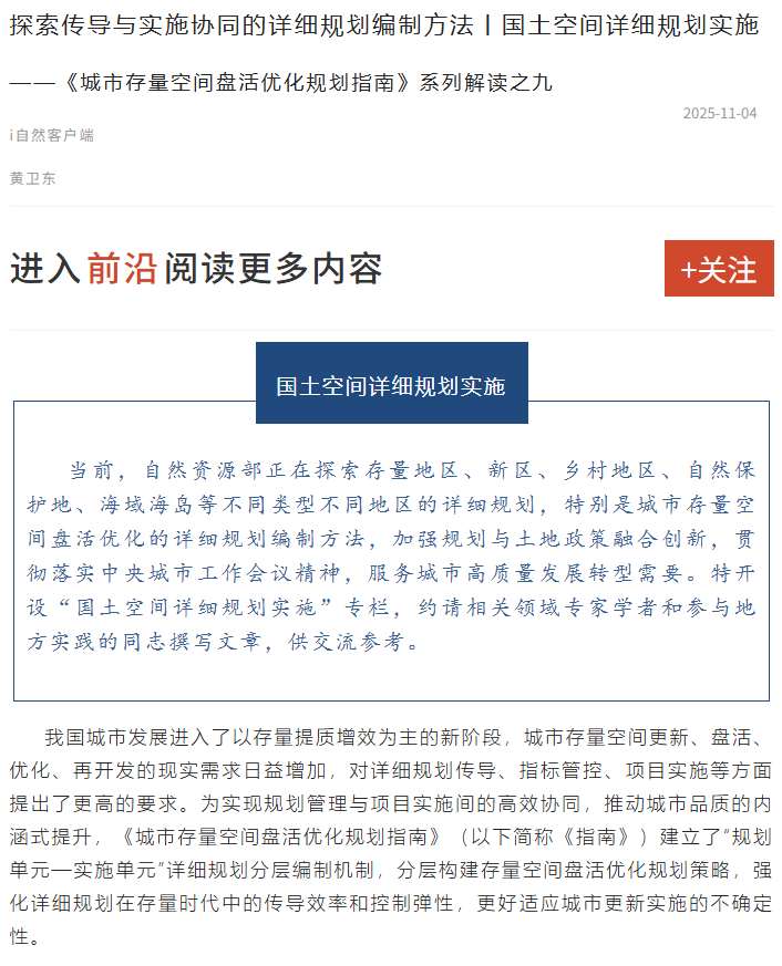 原文链接:重塑规划编制体系 贯通存量空间治理链条丨国土空间详细规划实施