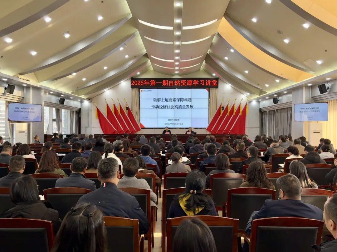 为深入贯彻落实“四个以学”长效机制,加强学习型机关、学习型党组织建设,引导和推动全厅上下大兴学习研究之风,1月23日,省自然资源厅2026年第一期自然资源学习讲堂开讲。厅党组书记盛高举主持并讲话,一级巡视员赵乔贵作专题讲座。