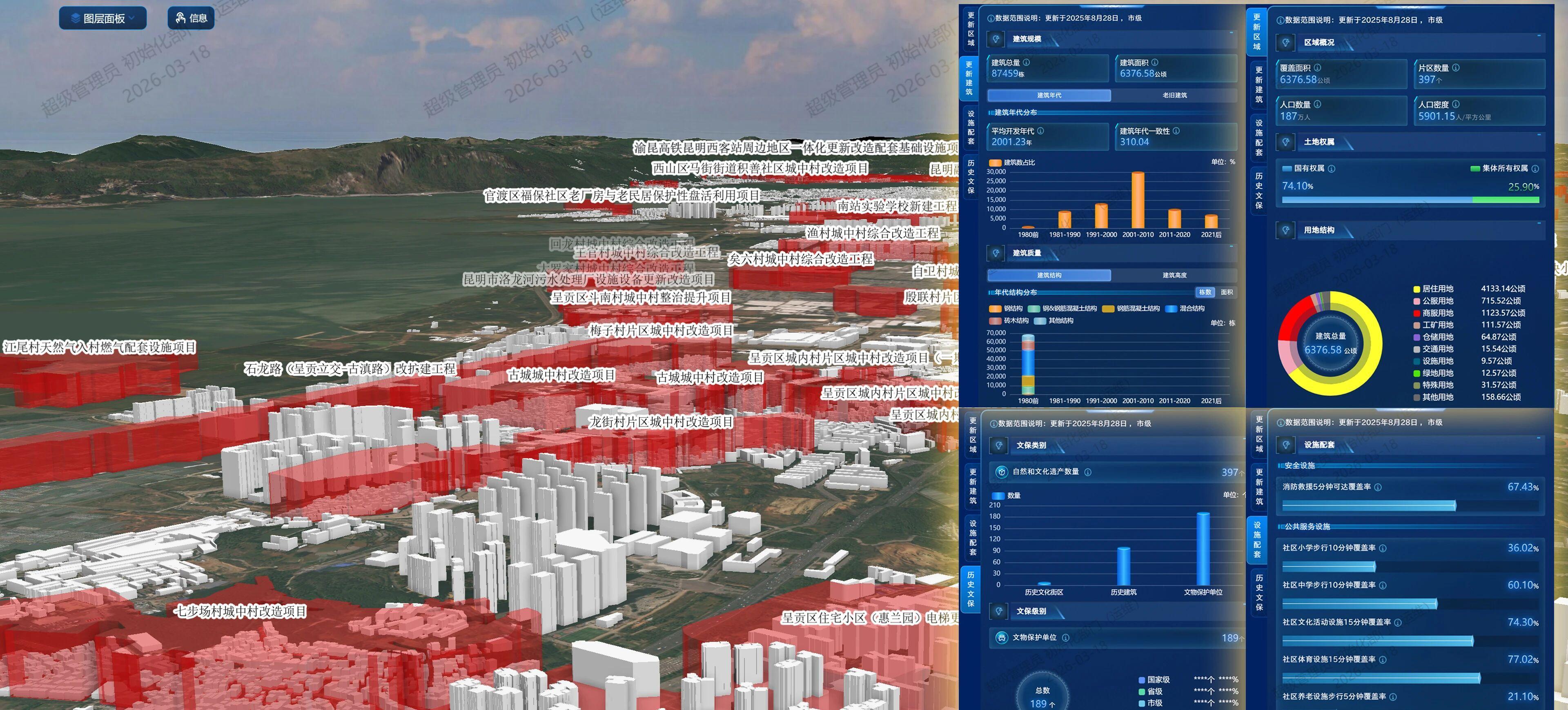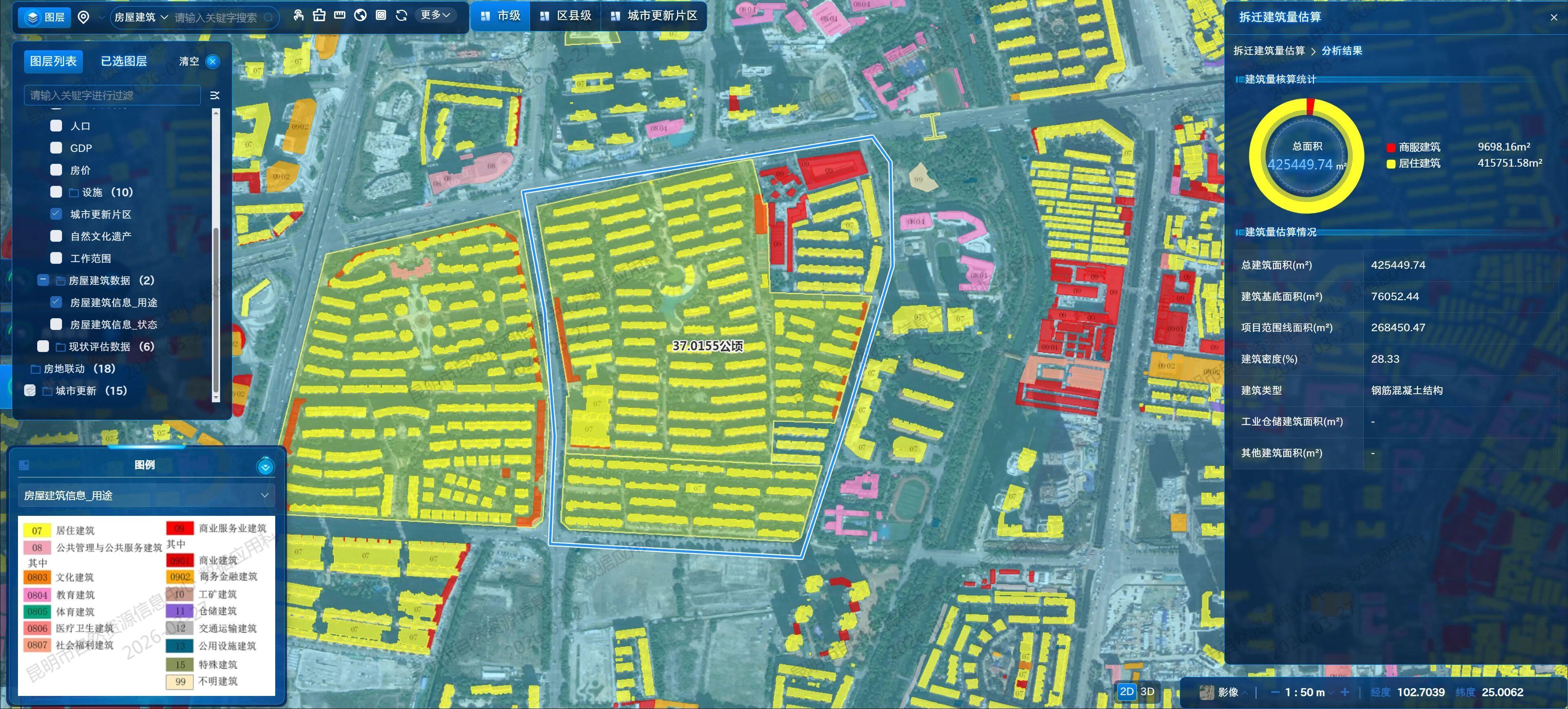 城市存量国土空间现状评估数据建设是筑牢国土空间规划实施监测网络(CSPON)的关键数据底座,是推动城市从“增量扩张”向“存量提质”转型的重要支撑。作为云南省省会和数据建设试点城市,昆明市于2025年完成中心城区826平方公里范围内的城市存量国土空间现状评估数据建设,构建了覆盖44.22万个房屋图斑、34.67万栋建筑的精准数据库,形成了一套“数智筑基、场景驱动、科学决策”的实践经验。